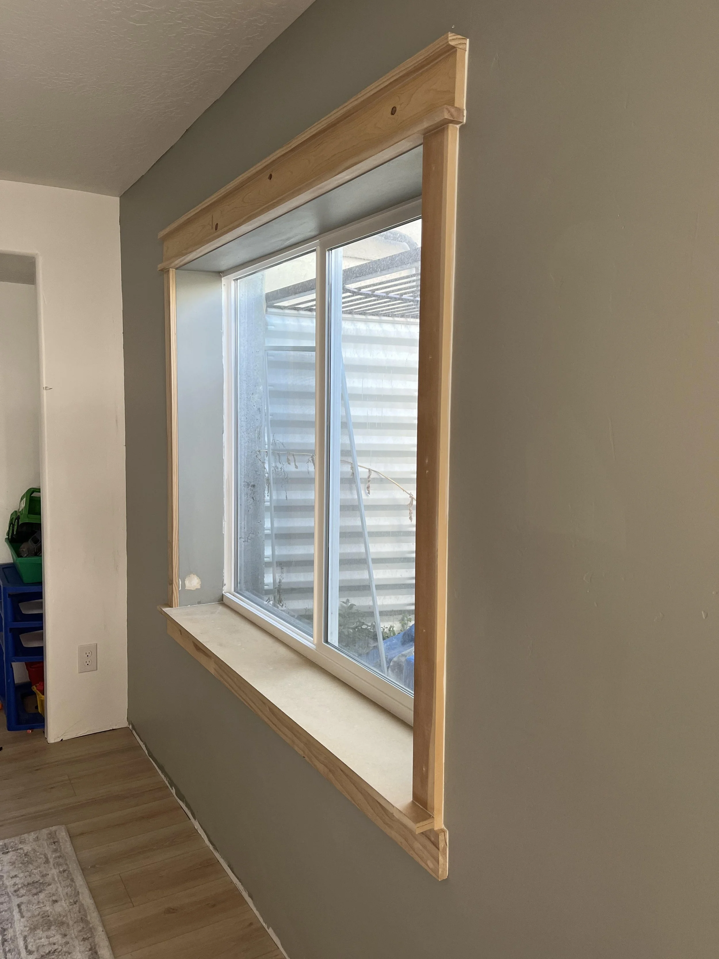 Look at the difference between the two windows! The trim makes the window feels so much bigger, ceiling looks higher, and the basement more homie. I’m so excited for paint, and baseboards. Finishing the basement is such a long process, but things like this make it so fun!